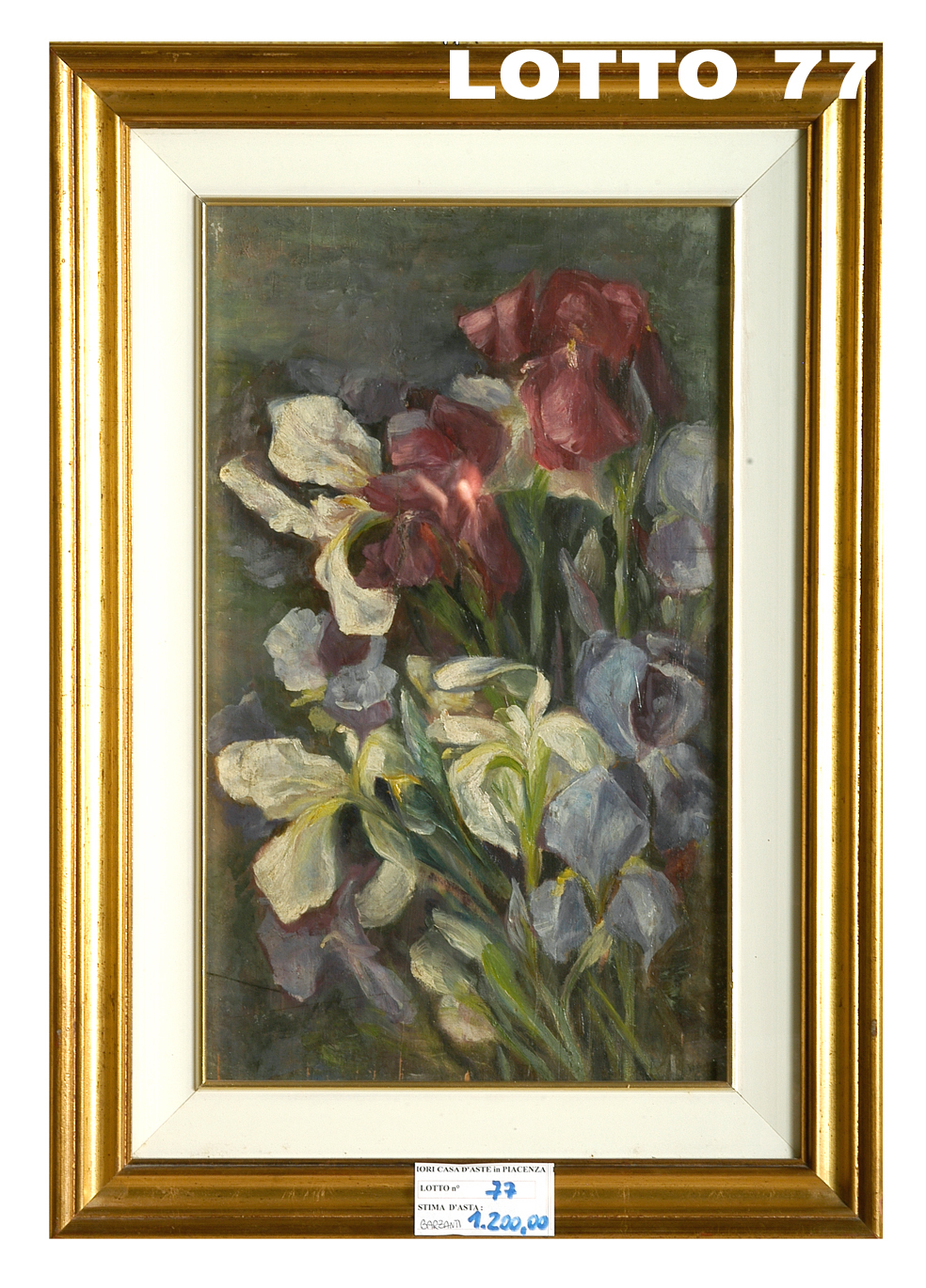 Lotto 77 | LICINIO BARZANTI (1857 – 1944) DIPINTO OLIO SU TAVOLA RAFF. GLADIOLI MIS. 46...