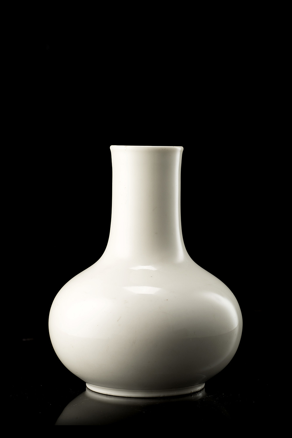 Vaso in porcellana monocroma bianca dal corpo schiacciatoCina, secolo XIX(h....