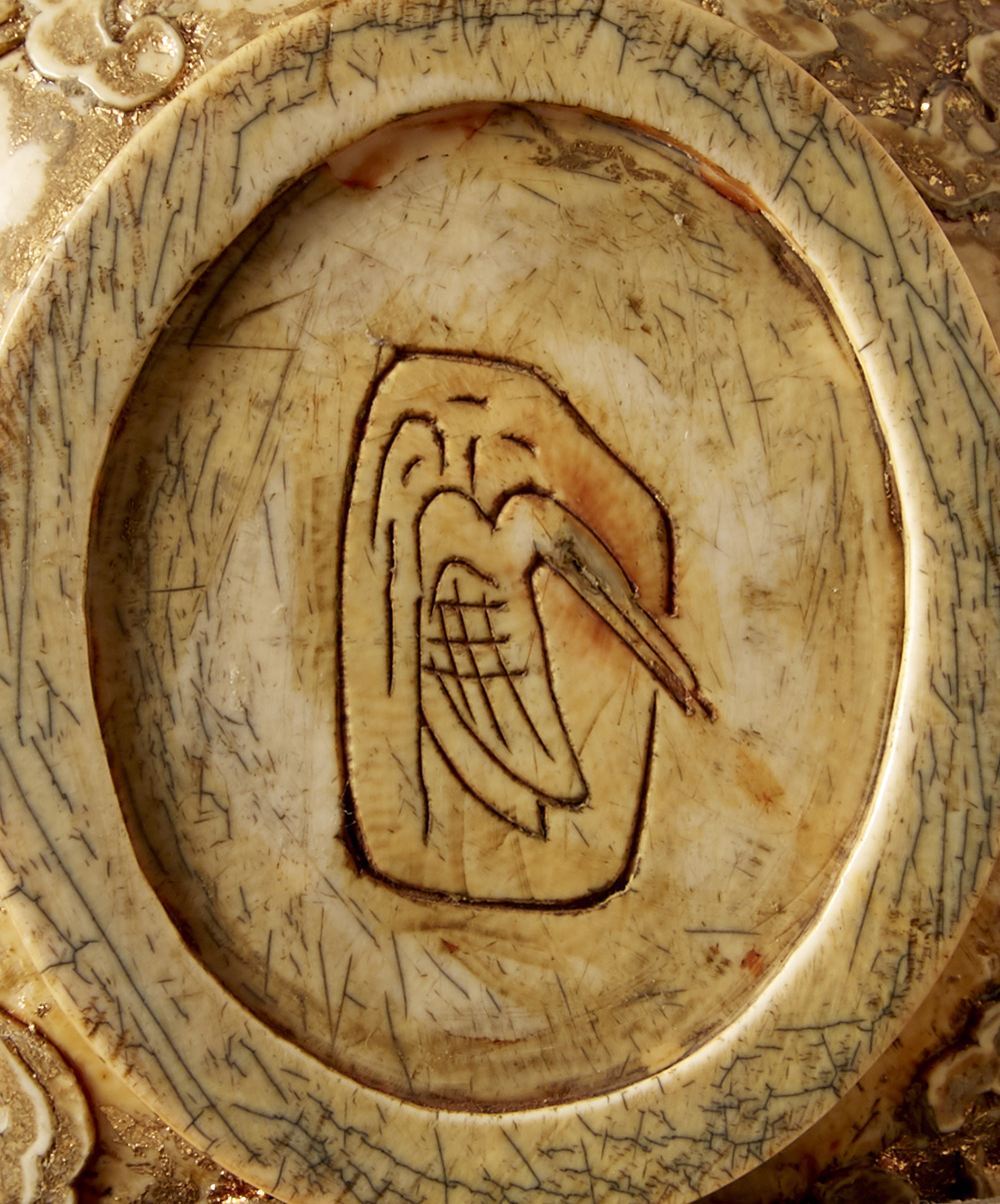 A double-goud ivory base with carved decoration and traces of gilt (slight defects)