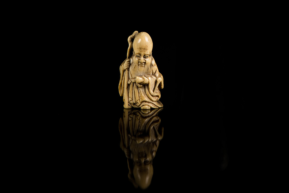 Un netsuke in avorio raffigurante saggio dalla lunga barba