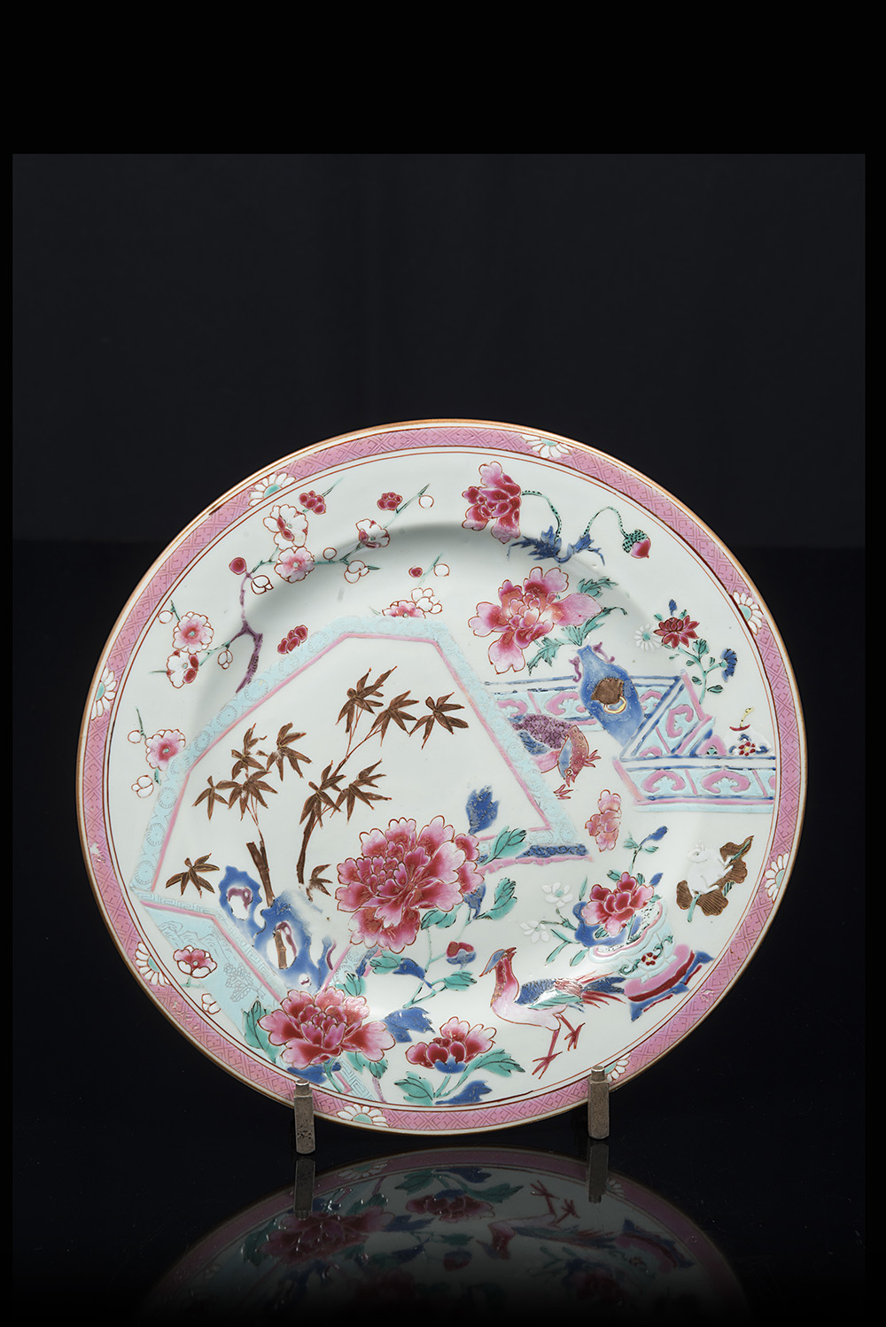 Piatto in porcellana Famiglia Rosa a decorazione florealeCina, inizio secolo...