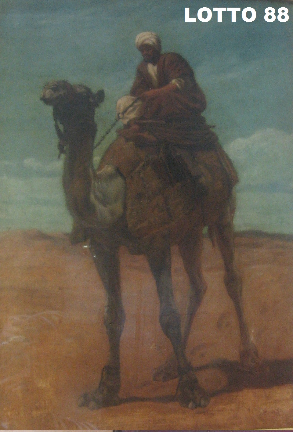 EUGENE FROMENTIN (1820 – 1876) DIPINTO OLIO SU TELA RAFF. ARABO CON CAMMELLO MIS. 58 X 48 CORREDATO DA AUTENTICA