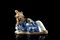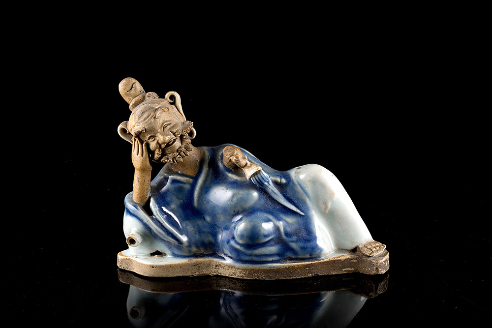 Modello in bisquit del poeta Li Bai invetriato in azzurro e blu (restauri)