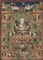 Thangka raffigurante Bodhisattva e varie divinità, su fondo verde, inchiostro...