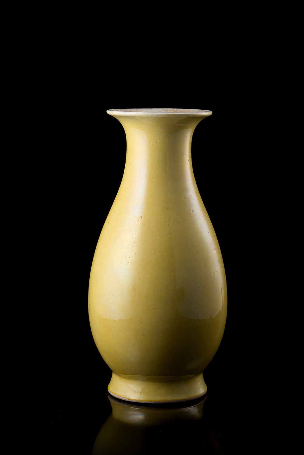 Vaso in porcellana a invetriatura giallaCina, secolo XIX(h. 25 cm.)-ENA...