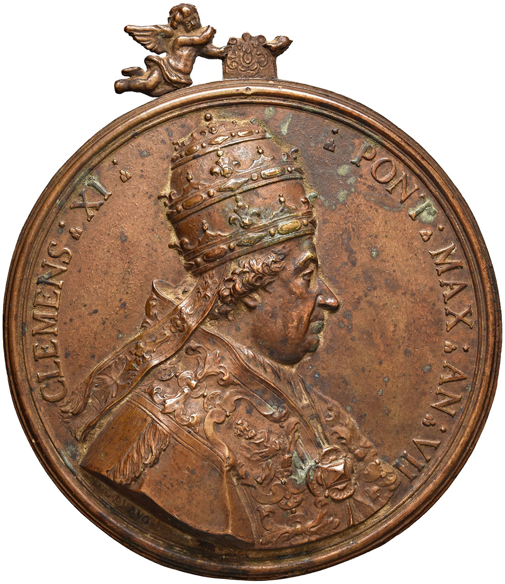 ROMA. Clemente XI (1700-1721) Medaglia uniface a sbalzo in bronzo (mm. 130)...