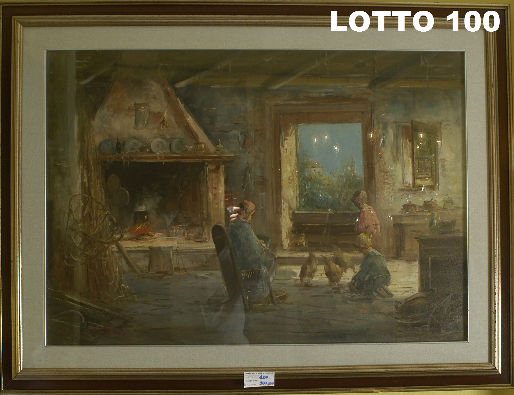 Lotto 100 | MARIO FATTORI (1930) DIPINTO OLIO SU TELA RAFF. SCENA FAMILIARE TOSCANA MIS....