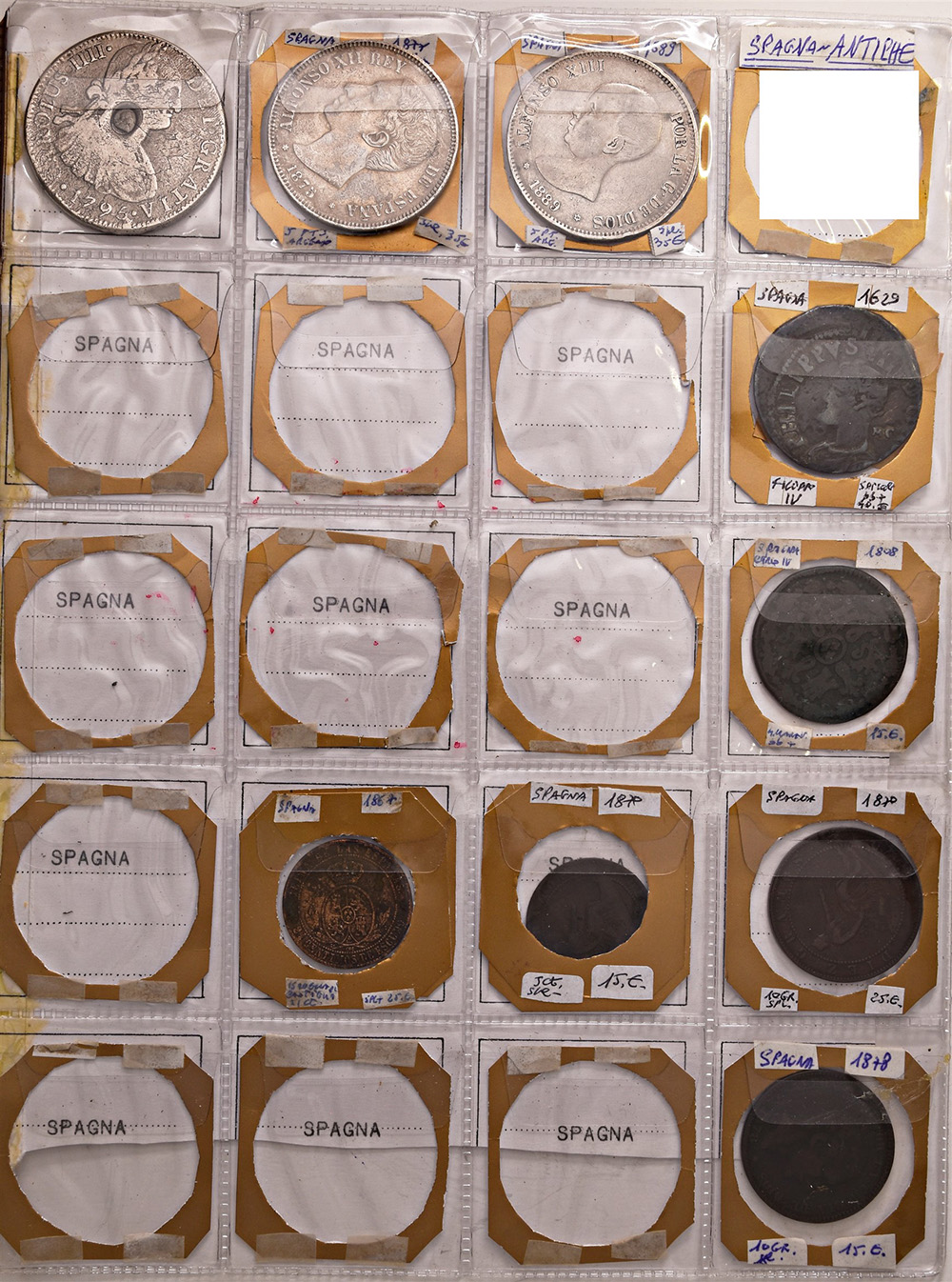 SPAGNA. Oltre 180 monete (una ventina in argento), compresi un falso da 8...