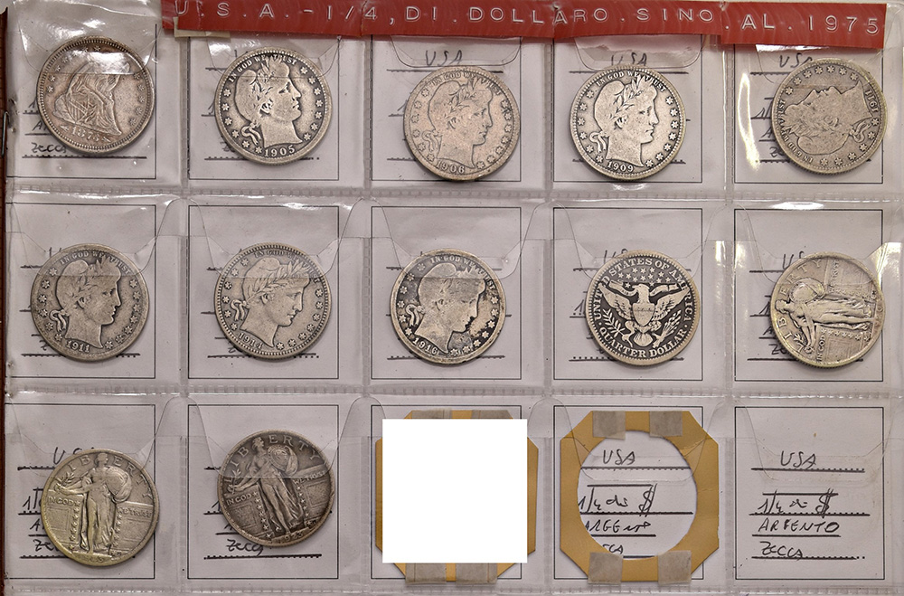 U.S.A. Album con 150 quarti di dollaro in argento (1873, 1905, 1906, 1909, 1911, 1914, 1915, 1916, 1920, 1923, 1926, e dal 1934 al 1964), più 85 esemplari in lega.