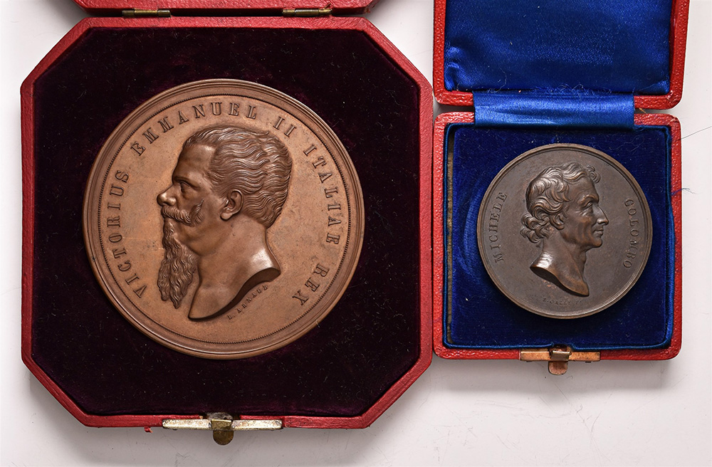 Una medaglia di Vittorio Emanuele II (1875) e una di Michele Colombo (1838). Entrambe in AE e SPL.