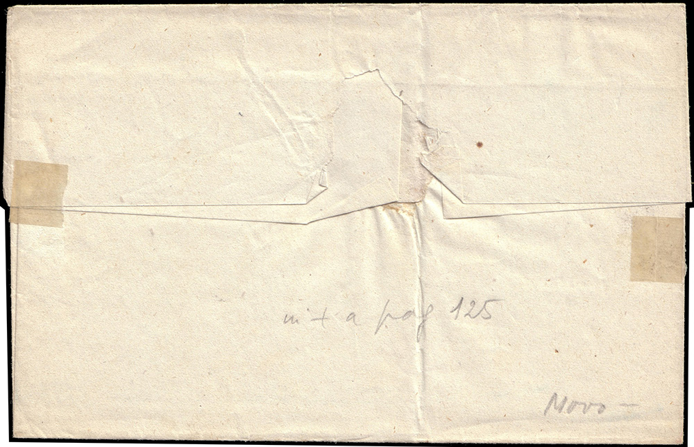 Lettera senza testo da Chieti per città, affrancata con 1gr. rosa carminio II tavola con interspazio di gruppo a sinistra, annullato con "svolazzo" tipo 9 e doppio cerchio grande sul frontespizio