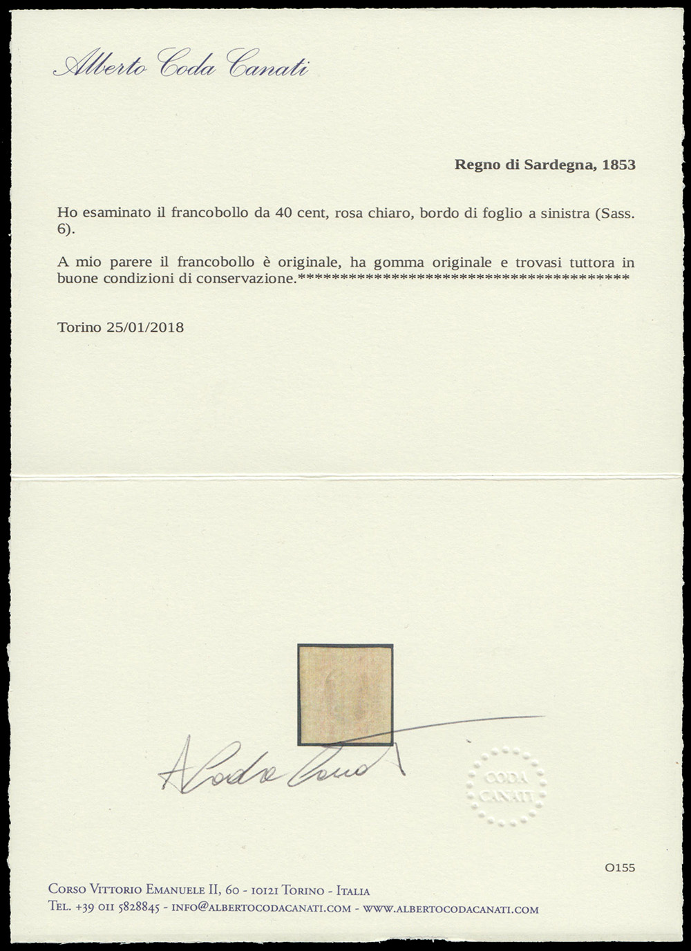SARDEGNA 185340c. rosa chiaro, bordo di foglio a sinistraFirma A....