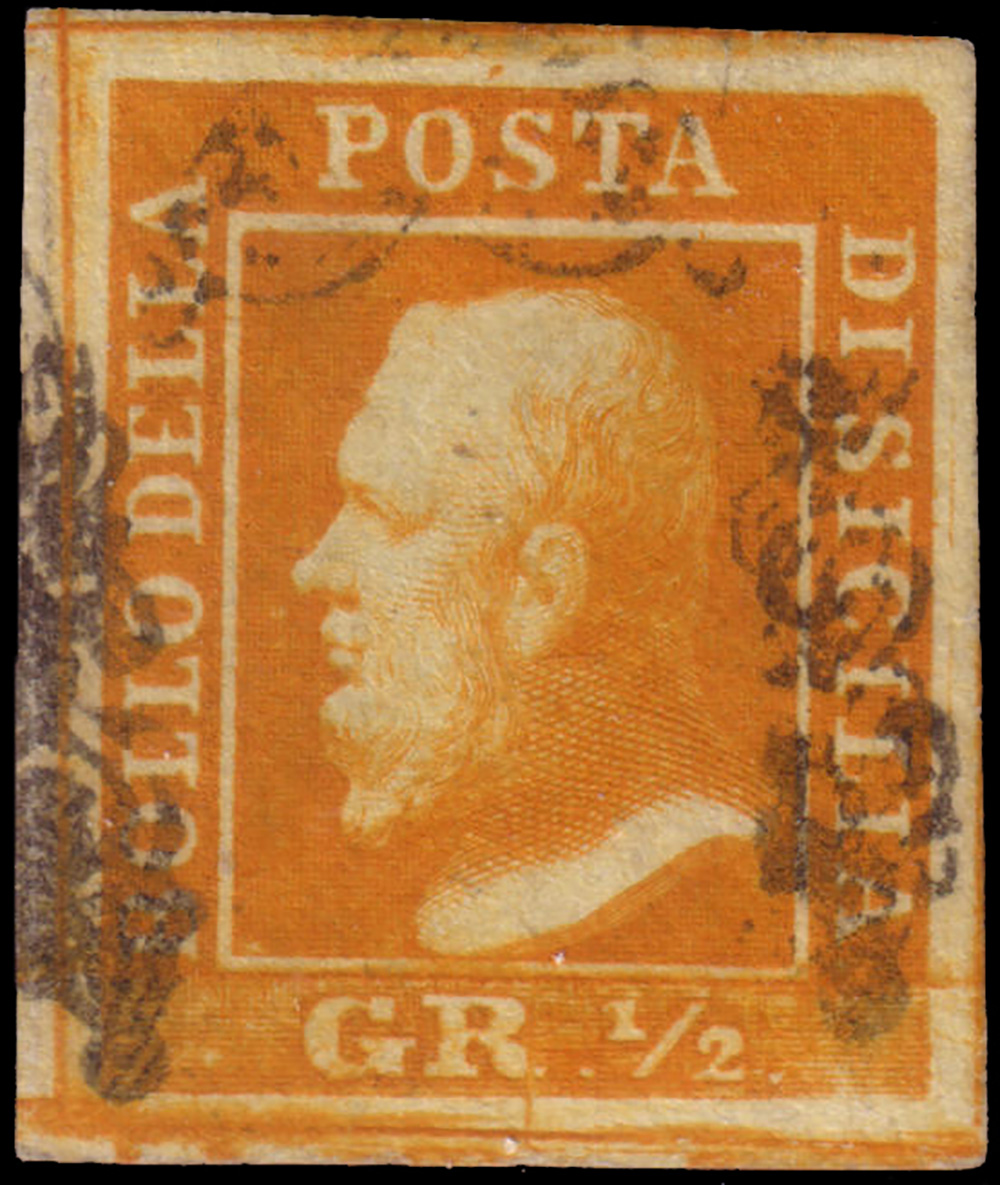 SICILIA 1859½gr. arancio scuro I tavolaFirma A. DienaUsed..........(Sass. 1e)