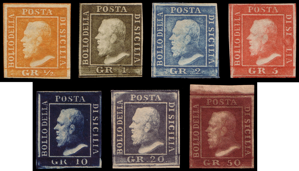 SICILIA 1859Serie completa di 7 valori. In cofanetto BolaffiCert. Finanziario...