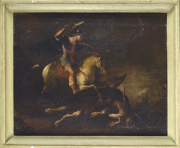 Scuola Italia settentrionale XVI sec. San Giorgio uccide il drago Olio su tela, cm. 44x55