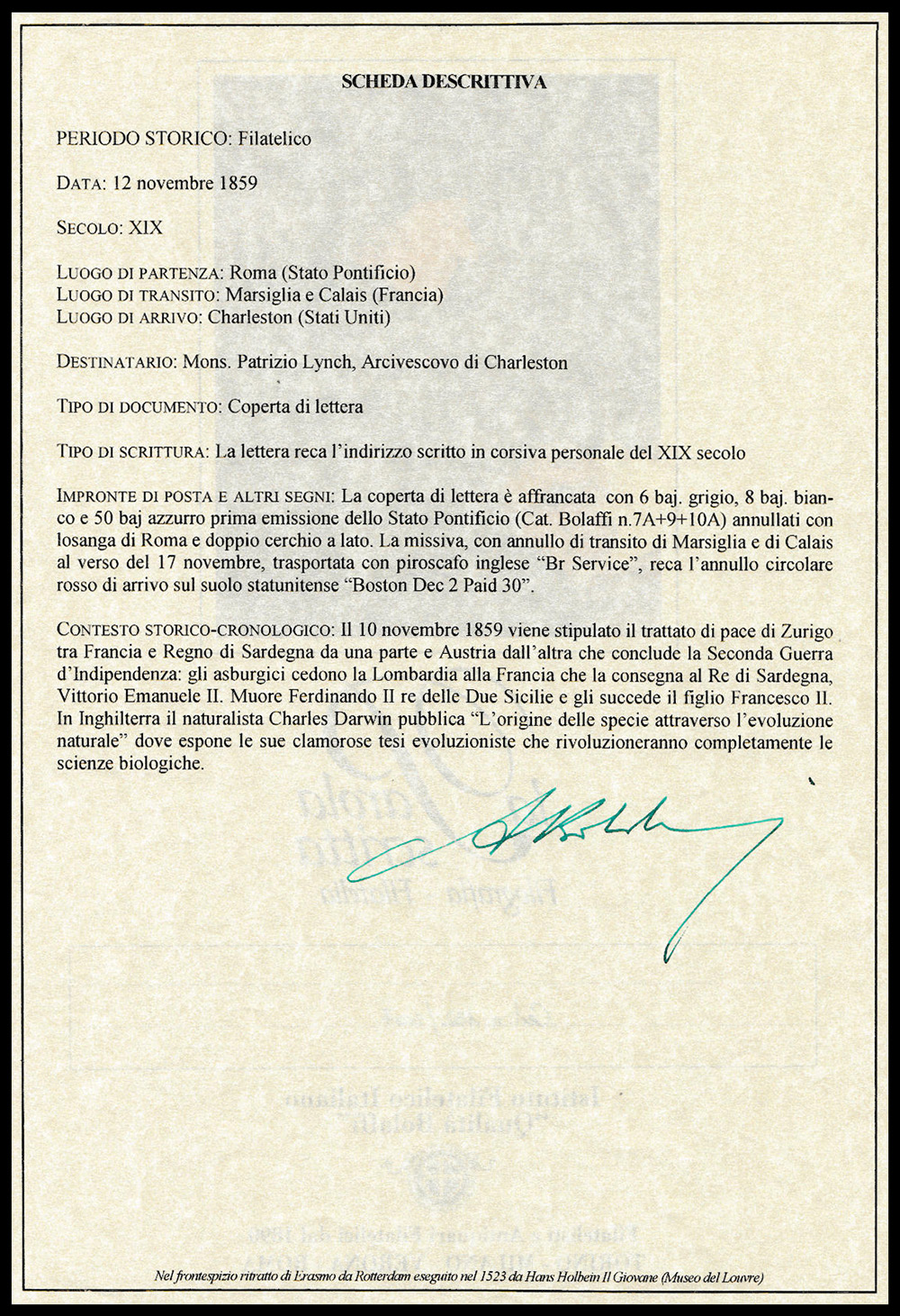 STATO PONTIFICIO 1857 (12 nov.)Lettera senza testo spedita da Roma per...