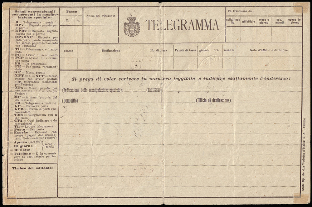 FIUME 1920 (14 ott.)L'emissione di posta ordinaria, espressi e segnatasse,...