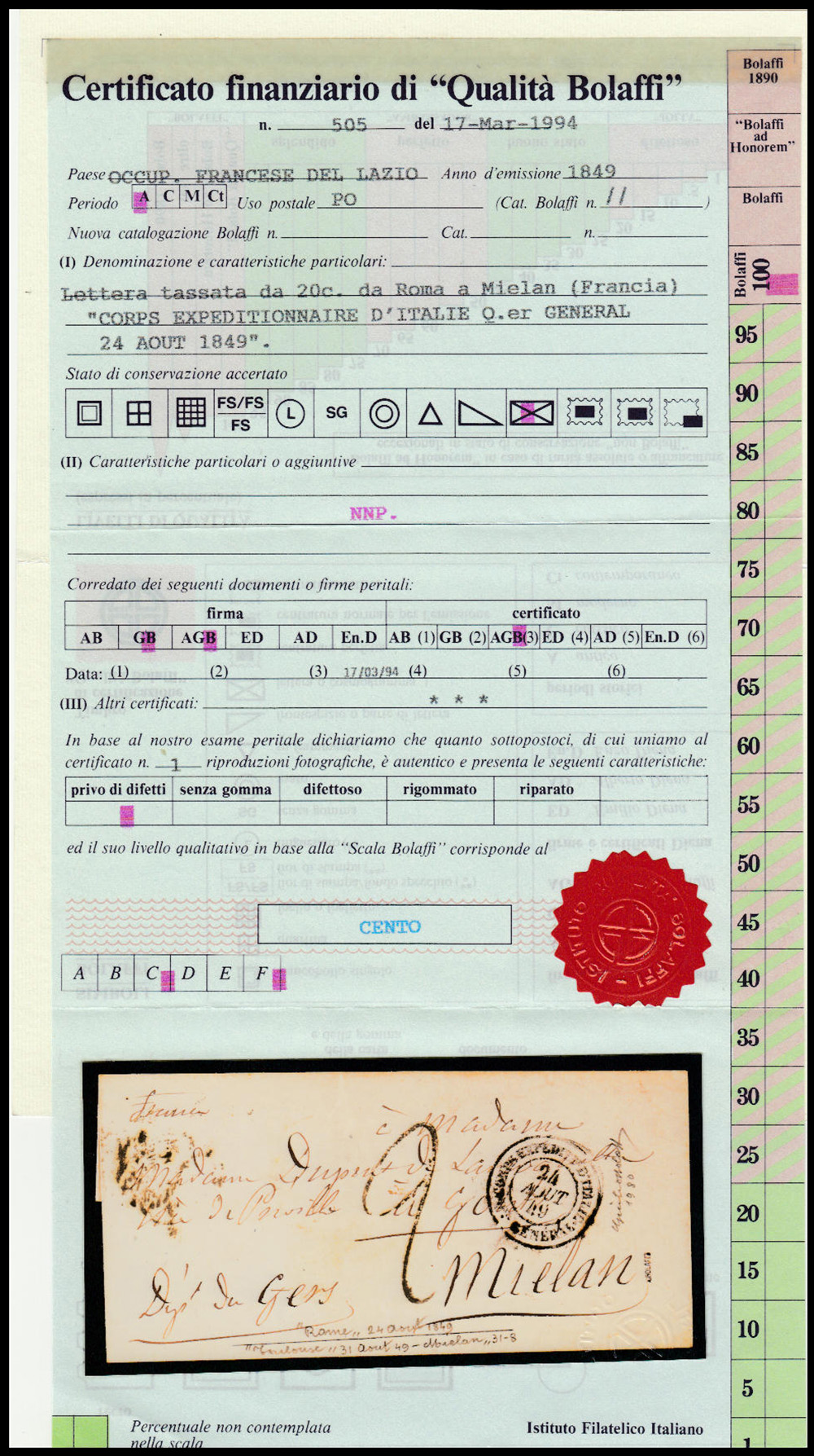 Cert. Finanziario Bolaffi. Firma G. Bolaffi
