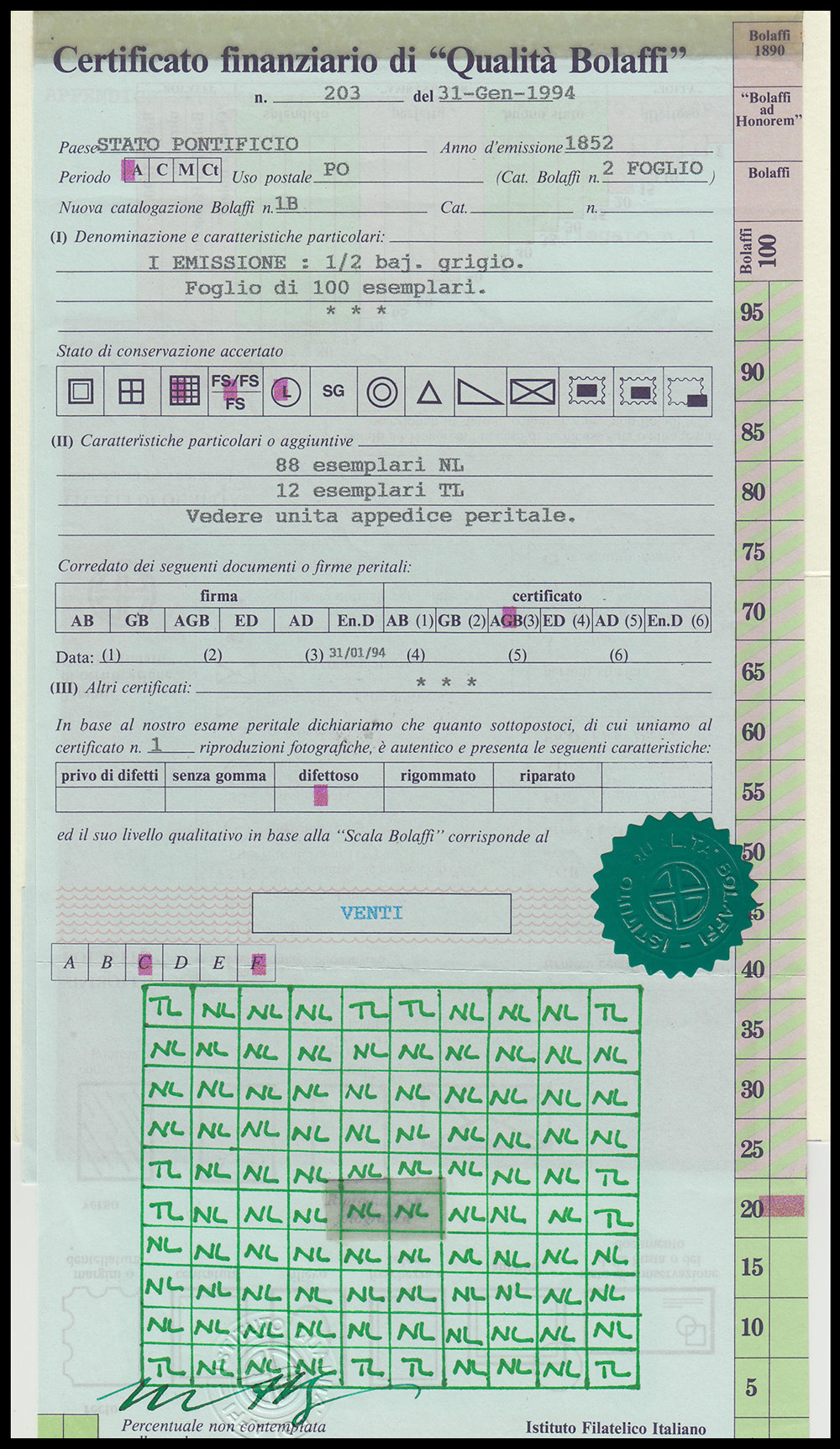 Lotto 335 | STATO PONTIFICIO 1852/1968Lotto composto dai fogli completi di 120 esemplari...