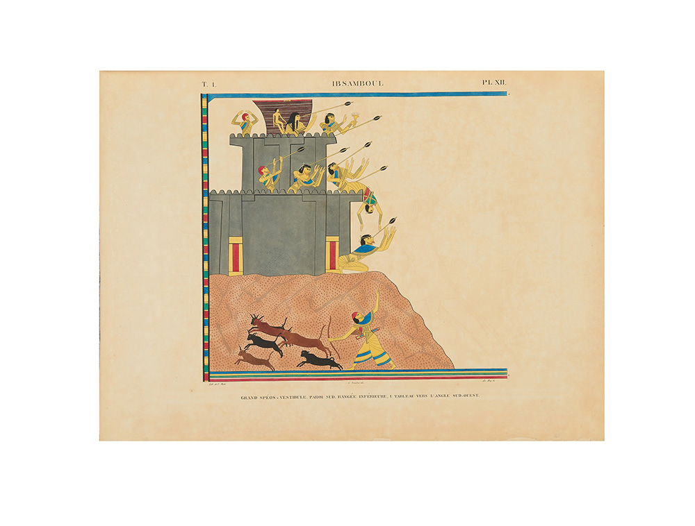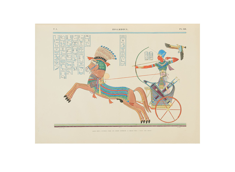 Prima edizione dell'atlante di geroglifici di Champollion, realizzato dopo le sistematiche indagini condotte negli anni 1828-1829 nelle regioni dell'Egitto e della Nubia.