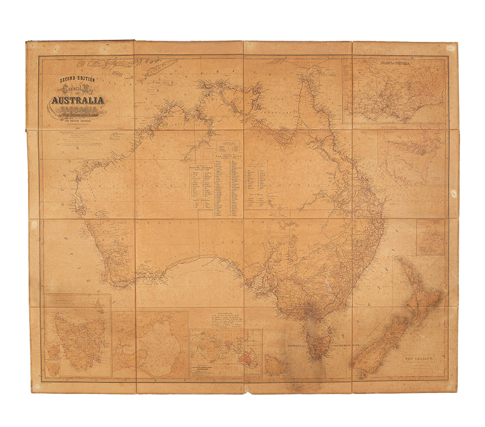 [MAPPA] - RAVENSTEIN, Ernst Georg (1834-1913) [disegnata da] - Schenck & Mc Farlone [litografo e stampatore a colori] - General Map of Australia and Tasmania, or Van Diemen's Land shewing the British Colonies as divided into Counties. Edimburgo, Londra, Mayence: A & C Black, Longman, Victor Von Zabern, 1857.