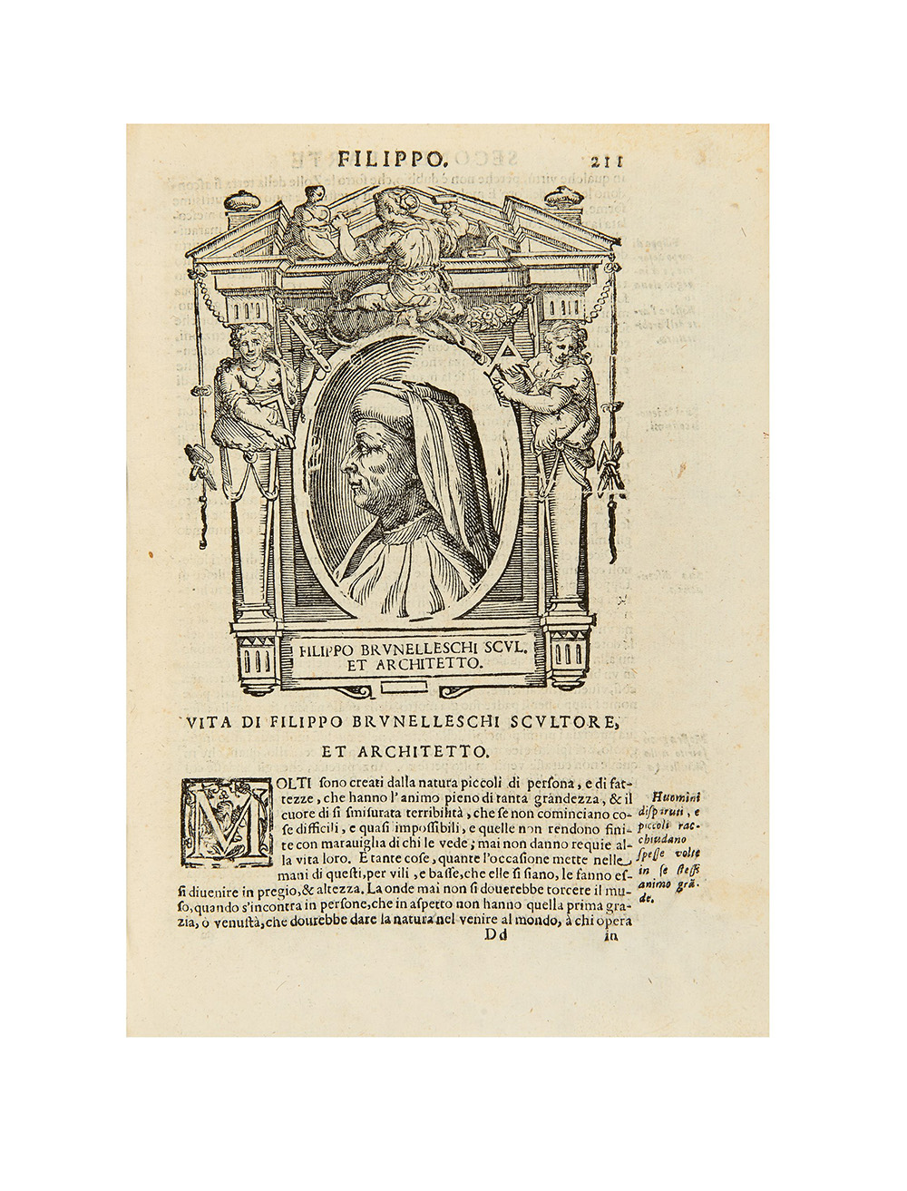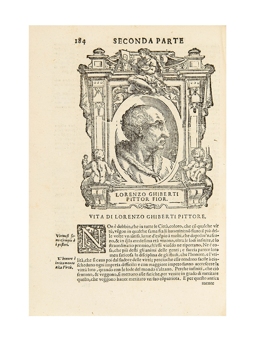 Pregevole edizione delle Vite del Vasari, curata da Carlo Manolessi, che riproduce i ritratti degli artisti tratti dall'edizione giuntina del 1568.