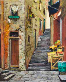 GIORGIO TADDEI Terni 1926 – 2004 SALITA PRIARO, 1969 olio su compensato, cm 58x48. Firmato e datato in basso a destra: G. Taddei .69. Provenienza: Alessandria, studio dell’artista (etichetta al retro)