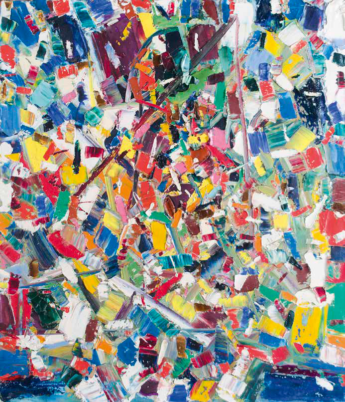 TANCREDI PARMEGGIANI Feltre 1927 – Roma 1964 SENZA TITOLO, 1958 olio su tela, cm 70x60. Dedicato al verso: Tancredi a Jolanda con affetto 59. Autentica su foto dell’Associazione Nazionale Gallerie d’Arte Moderna firmata da Rinaldo Rotta in data: Milano, 2 luglio 1990. Numero di repertorio: 2043/90/M. Provenienza: Parma, Galleria Centro Steccata; Merate, collezione privata; Collezione privata. Esposizioni: Milano, Tancredi. 430a Mostra del Naviglio, Galleria del Naviglio, 29 settembre – 8 ottobre 1965; Bibliografia: G. Ballo, Tancredi. 430a Mostra del Naviglio, catalogo della mostra, Milano, Galleria del Naviglio 1965; M. Dalai Emiliani con la collaborazione di S. Mascheroni e C. Scatturin, Tancredi. I dipinti e gli scritti, Volume primo, Umberto Allemandi & C. Torino 1996, p. 261 (cit.), Volume secondo, tav. 744 (ill.) Il percorso artistico di Tancredi può essere descritto come un’intensa e incessante ricerca: partendo dalla figurazione dei primi ritratti a matita, egli passa all’assoluta astrazione dove il punto e il colore determinano lo spazio della tela, fino a trascendere completamente il medium pittorico e riflettere sul gesto stesso. Questo climax ascendente è tanto intenso, quanto repentino: Tancredi infatti morirà a soli 37 anni suicida, pochi giorni dopo il suo compleanno, lanciandosi nelle gelide acque del Tevere. È ancor più significativo che in alcune delle sue pagine di diario datate poche settimane prima del tragico epilogo lasci come ultimo pensiero “la vita è ancora tutta da scoprire”, segno che la sua ricerca, pur nel grigiore della depressione, non stentava ancora a cessare. La tela presentata per consonanze stilistiche è ascrivibile al 1958, anche se la data al verso (1959) è autografa e si riferisce presumibilmente al momento della dedica (cfr. M. Dalai Emiliani, op. cit., p. 261). In questa opera il gesto esalta il segno disponendo il colore nella tela esaltandone l’aspetto materico, quasi a formare un mosaico di campiture dalle possibilità cromatiche nuove e inesplorate