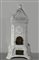 Stufa in maiolica parete color avorio con cimase, coronata da elemento a...