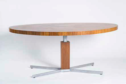 MUTZ, GERMANIA Tavolo di forma ellittica regolabile in altezza, in noce, anni...