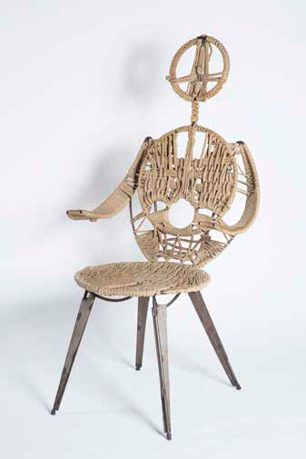 RENATO BASSOLI (1915-1982) Sedia antropomorfa in metallo patinato e corde, 1950 circa dimensioni: cm 129x60x72. Esposizioni: Monaco, Museo Villa Stuck, Die Fünfziger: Stilkonturen eines Jahrzehnts. Italien, Skandinavien, Frankreich, Deutschland, USA, Polen, England, Niederlande, 13 gennaio – 26 febbraio 1984. Bibliografia: AA. VV., Die Fünfziger: Stilkonturen eines Jahrzehnts. Italien, Skandinavien, Frankreich, Deutschland, USA, Polen, England, Niederlande, catalogo della mostra, Monaco, 1984, pag. 104, n. 173, riprodotto