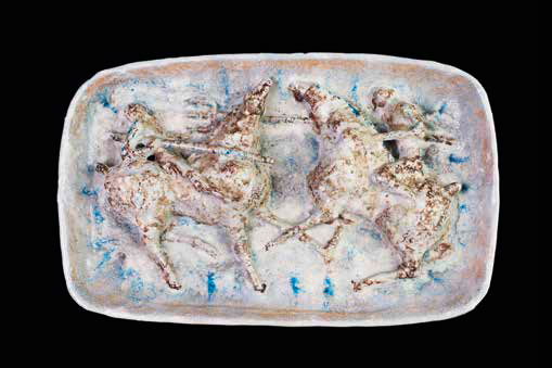 MANIFATTURA ITALIANA Rilievo in ceramica smaltata, 1950 circa. Marca: MADE IN...