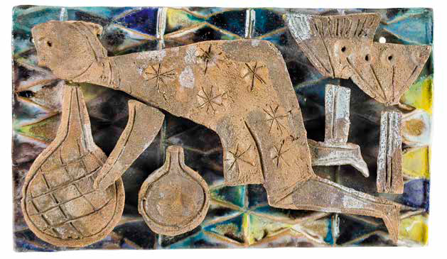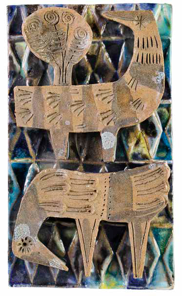 ALESSIO TASCA (1929) Coppia di pannelli in terracotta smaltata, 1959 Pannello orizzontale firmato e datato: Tasca 1959. Pannello verticale firmato e datato: Tasca 59. dimensioni: cm 32,5x19. Provenienza: Milano, Galleria Ars (etichette al verso).