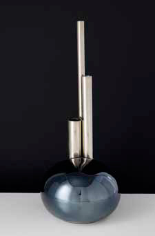 SICART Vaso con base in ceramica e tre cilindri di metallo di misure diverse, anni ‘50/’60 altezza: cm 43,5.