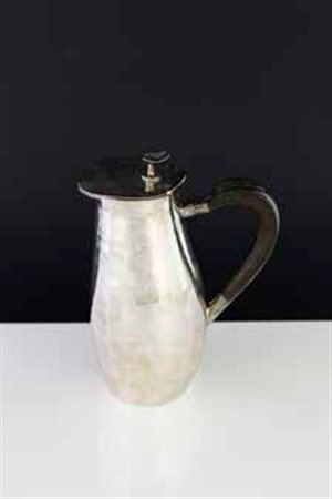 MANIFATTURA TEDESCA Caffettiera in argento con manico in ebano, anni ‘50/’60 altezza: cm 25. Esposizioni: Monaco, Museo Villa Stuck, Die Fünfziger: Stilkonturen eines Jahrzehnts. Italien, Skandinavien, Frankreich, Deutschland, USA, Polen, England, Niederlande, 13 gennaio – 26 febbraio 1984. Bibliografia: AA. VV., Die Fünfziger: Stilkonturen eines Jahrzehnts. Italien, Skandinavien, Frankreich, Deutschland, USA, Polen, England, Niederlande, catalogo della mostra, Monaco 1984, pag. 100, n. 162, riprodotto.