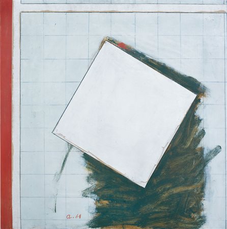 RODOLFO ARICO’ Milano 03/06/1930 - 2002 - Simomis, 1961, olio su tela cm. 100x100, sigla e anno in basso a sinistra, titolo e firma al retro.
