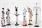 FULVIO BIANCONI (1915 – 1996) VENINI La Commedia dell’Arte, 1948 serie completa di figurine in vetro lattimo con applicazioni in paste vitree policrome; altezze: da cm 15 a cm 36. Firmate ad acido: Venini Murano Italia. I personaggi, da sinistra a destra, sono: - Arlecchino (Catalogo rosso: n. 2908; Catalogo verde: n. 402.8); - Arlecchina (Catalogo rosso: n. 2911; Catalogo verde: n. 402.11); - Meneghino (Catalogo rosso: n. 2903; Catalogo verde: n. 402.3); - Rosaura (Catalogo rosso: n. 2907; Catalogo verde: n. 402.7); - Capitan Fracassa (Catalogo rosso: n. 2905; Catalogo verde: n. 402.5); - Beppe Nappa (Catalogo rosso: n. 2902; Catalogo verde: n. 402.2); - Brighella (Catalogo rosso: n. 2909; Catalogo verde: n. 402.9); - Giangurgolo (Catalogo rosso: n. 2900; Catalogo verde: n. 402.0); Arlecchino ginnasta (Catalogo rosso: n. 2906; Catalogo verde: n. 402.6); - Tartaglia (Catalogo rosso: n. 2904; Catalogo verde: n. 402.4); - Pulcinella (Catalogo rosso: n. 2910; Catalogo verde: n. 402.10); - Pantalone (Catalogo rosso: n. 2901; Catalogo verde: n. 402.1). Provenienza: Monaco, Collezione Otto Bantele; Esposizioni: Venezia, XXIV Esposizione internazionale d’arte, 01 maggio 1948 – 30 settembre 1948; Monaco, Museo Villa Stuck, Die Fünfziger: Stilkonturen eines Jahrzehnts. Italien, Skandinavien, Frankreich, Deutschland, USA, Polen, England, Niederlande, 13 gennaio – 26 febbraio 1984. Bibliografia: AA. VV., XXIV Biennale di Venezia. Catalogo, Edizioni della Serenissima, Venezia 1948, n. 93; R. Aloi, Esempi. Vetri di Murano Oggi, Hoepli, Milano 1955, p. 14, Vetri Murano Oggi, Electa, Milano 1981, p. 113, n. 427; R. Barovier Mentasti, Il vetro veneziano Dal Medioevo al ‘900, Electa, Milano 1982, p. 306, n. 321; R. Barovier Mentasti, A. Dorigato, A. Gasparetto, T. Toninato (a cura di), Mille Anni di Arte del Vetro a Venezia, catalogo della mostra, Albrizzi, Venezia 1982, p. 310, n. 647; AA. VV., Die Fünfziger: Stilkonturen eines Jahrzehnts. Italien, Skandinavien, Frankreich, Deutschland, USA, Polen, England, Niederlande, catalogo della mostra, Monaco, 1984, pag. 49, n. 17; A. Dorigato, Il Museo vetrario di Murano, Electa, Milano 1986, p. 90; F. Deboni, I Vetri Venini, Umberto Allemandi & C., Torino 1989, nn. 95, 100; R. Barovier Mentasti, Vetro Veneziano 1890-1990, Arsenale editrice,Venezia 1992, p. 112, n. 99; R. Bossaglia, I vetri di Fulvio Bianconi, documenti e apparati a cura di M. Cocchi, Umberto Allemandi & C., Torino 1993, nn. 1-6, 9; AA. VV., R. Barovier Mentasti, introduzione di A. Bettagno, con un saggio di A. Venini e S. K. Frantz, Gli artisti Venini. Per una storia del vetro d’arte veneziano, catalogo della mostra, Fondazione Giorgio Cini, Electa, Milano 1996, p. 114, nn. 133-134; M. Heiremans, 20th Century Murano Glass. From Craft to Design, Arnoldsche, Stuttgart 1996, p. 72, nn. 78-79; H. Ricke, E. Schmitt (a cura di), Italienisches Glas Murano-Mailand 1930-1970, catalogo della mostra, Prestel, Munchen-New York 1996, pp. 94-96, nn. 62-64; R. Miracco (a cura di), Sculture di luce. Murano, 1930-1965, catalogo della mostra, Solarte, Roma 1996, p. 36, nn. 44- 45, p. 37, n. 47; AA. VV., Venini Venezia. Modern Glass, catalogo della mostra, Helsinki 1998, p. 72; A. Venini Diaz de Santillana, Venini. Catalogo ragionato 1921-1986, Skira, Milano 2000, n. 151, p. 216; F. Deboni, I Vetri Venini. Catalogo 1921-2007, Umberto Allemandi & C., Torino 2007, n. 180; M. Barovier con C. Sonego (a cura di), Fulvio Bianconi alla Venini, Skira, Milano 2015, pp. 319-337.
