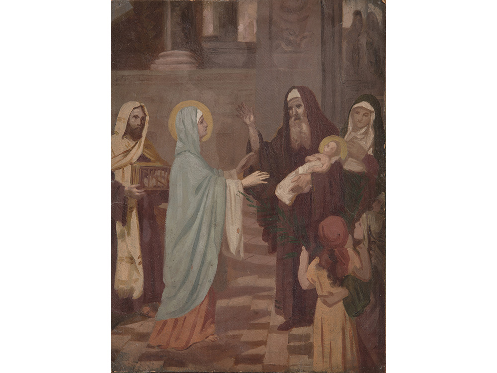 Anonimo (XIX secolo) Presentazione al tempio 36x26.7 cm Olio su cartoncino