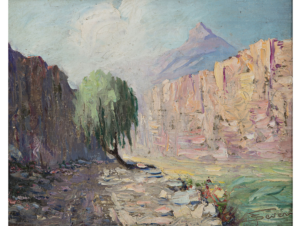 Giordano Severi (1891-1957) Amba Alagi 26x33 cm Olio su tavola