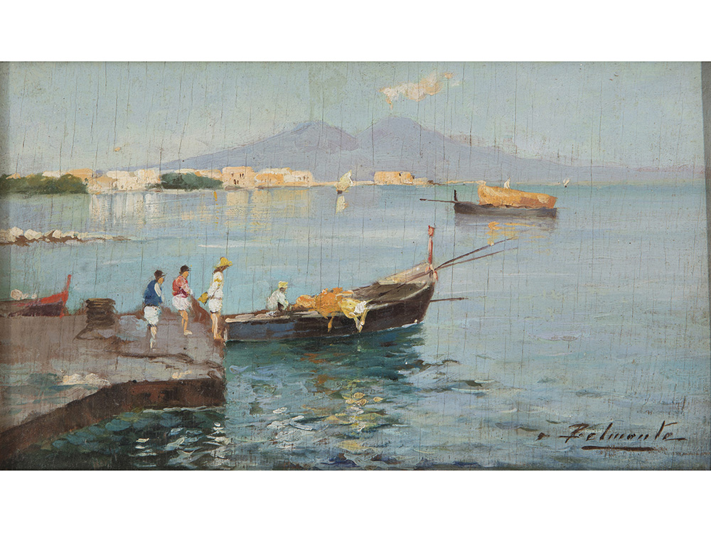 Autore non identificato (XX secolo) Figure nel golfo di Napoli 17x29 cm Olio...
