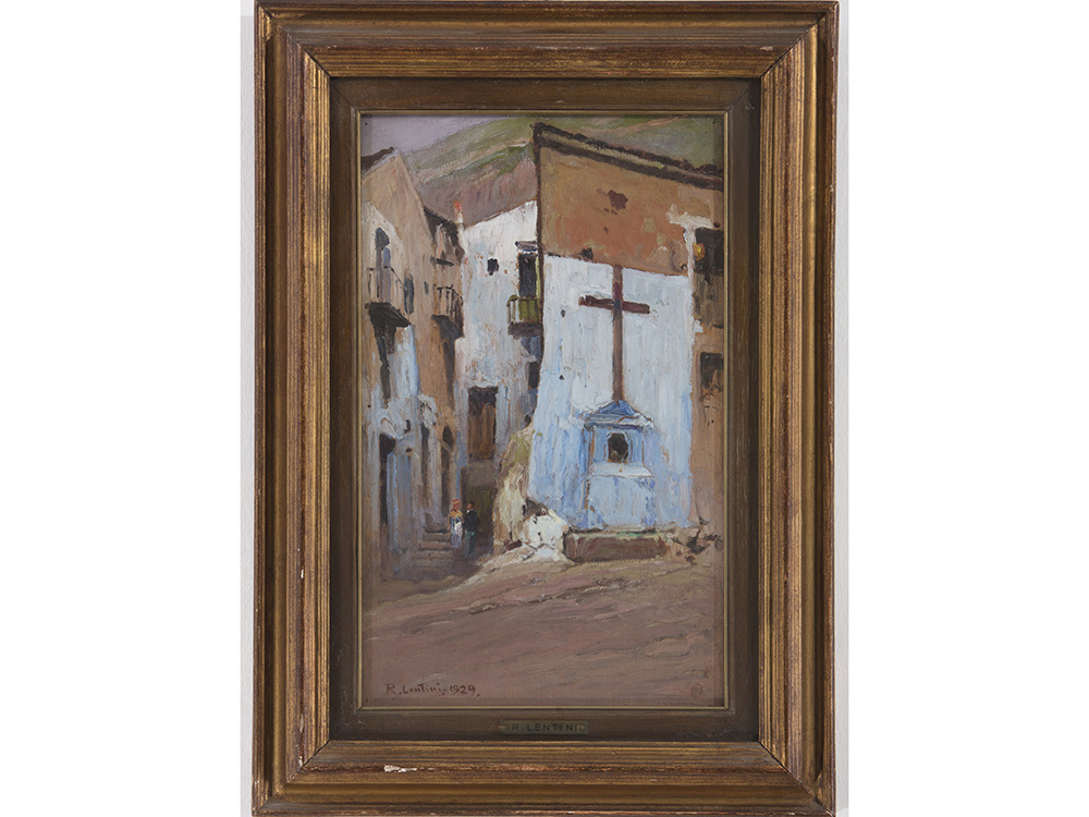 Rocco Lentini (1858–1943) Vicolo con figure 38x25.5 cm Olio su compensato