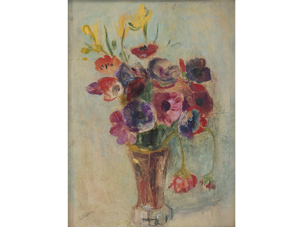 Gino Moro (1901-1977) Vaso con fiori 40x30 cm Olio su compensato
