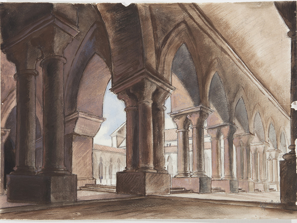 Firma illeggibile (XX secolo) Chiostro 33x44,5 cm Tecnica mista su carta