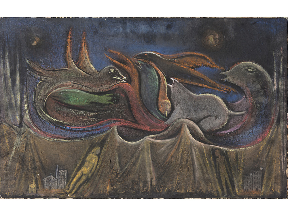 Anonimo (XX secolo) Senza titolo 40x60 cm Tecnica mista su cartoncino