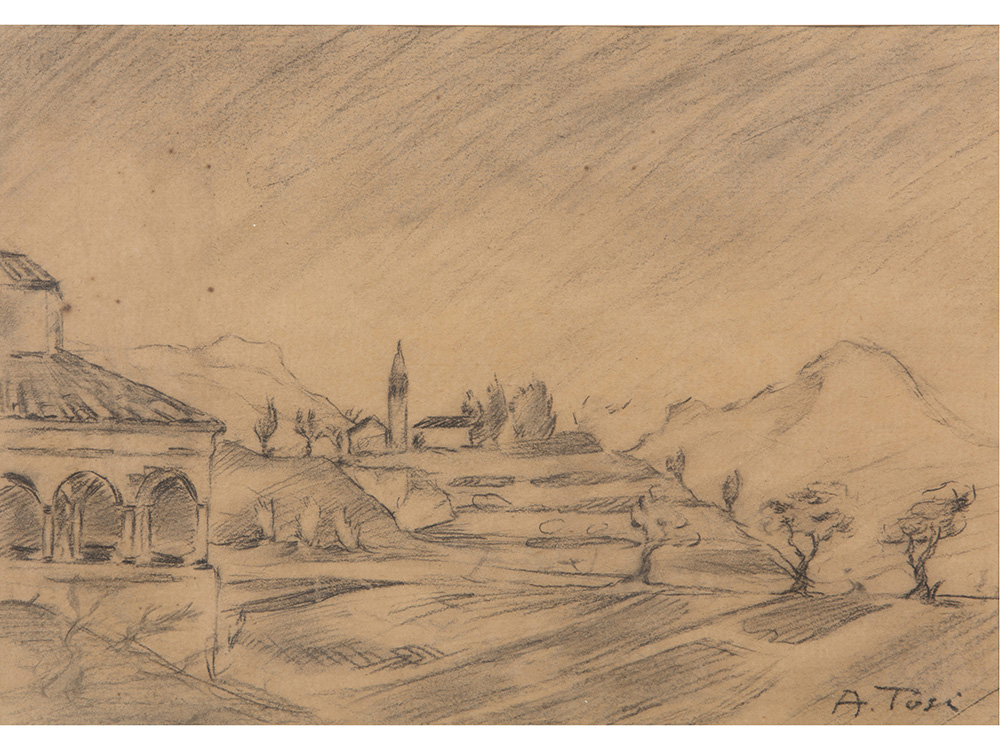 Arturo Tosi (1871–1956) Paesaggio 24x35 cm Matita su carta