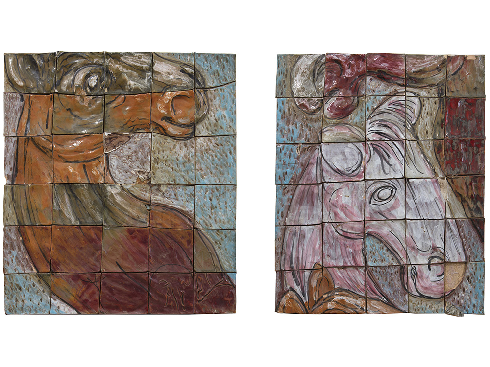 Firma illeggibile (XX secolo) Teste di cavallo 63x51 cm - 57x51 cm Piastrelle...