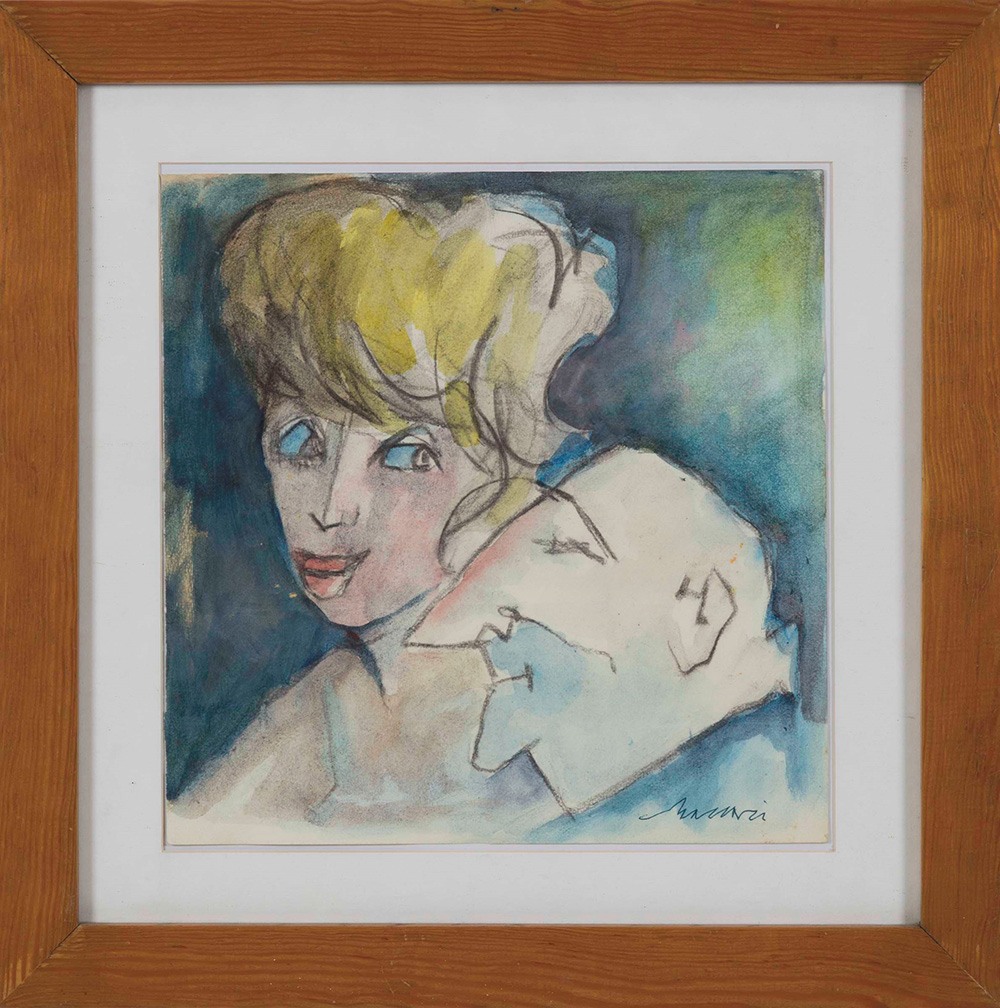 Mino Maccari (1898-1989) Senza titolo pastelli e matite su carta, cm 33x32,5...