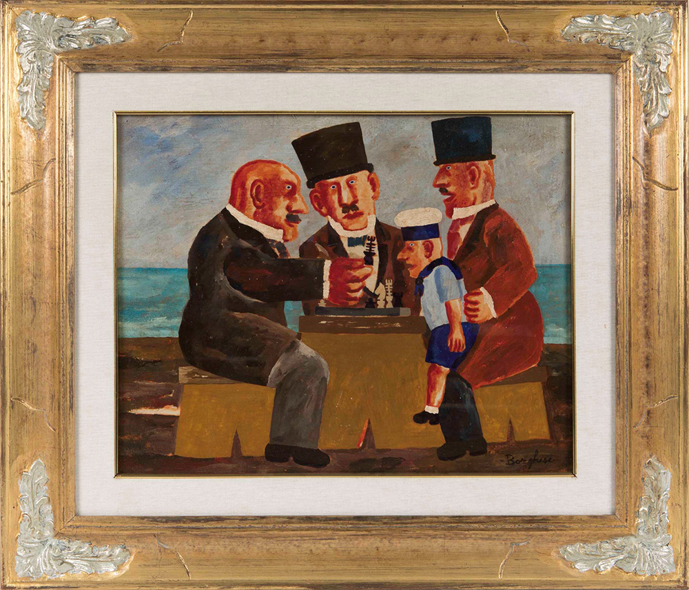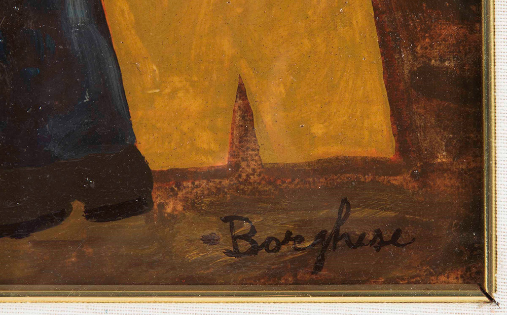 Franz Borghese (1941-2005) Senza titolo olio su tavoletta, cm 47x38 firmato in basso a destra Autentica su fotografia dall'artista l'opera si presenta in buono stato di conservazione Franz Borghese (1941-2005), Untitled oil on panel, cm 47x38 signed lower right Photo certificate signed by the artist