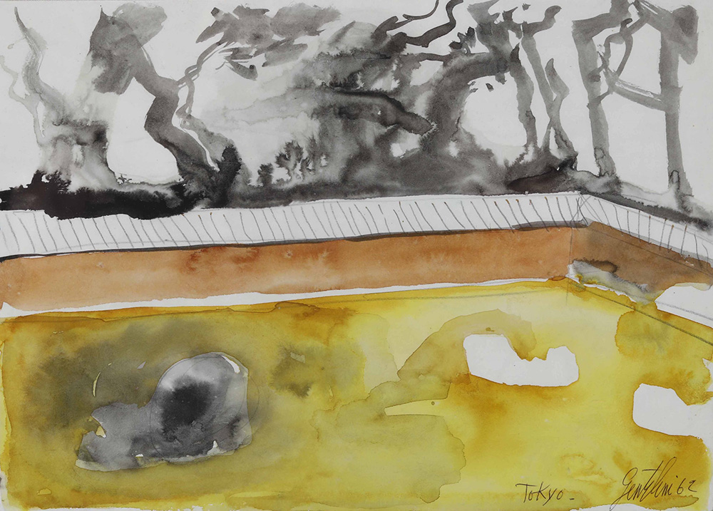 Franco Gentilini (1909-1981) Tokyo, 1972 acquarello su carta, cm 24x34...