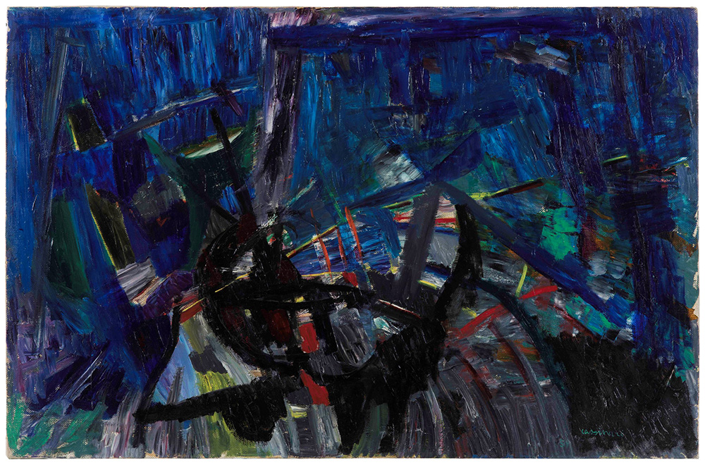 Bruno Cassinari (1912-1992) Burrasca, 1959 olio su tela, cm 65x100 firmato in basso a destra firmato, intitolato e datato al retro Etichetta al retro della Galleria Le Arti, Ravenna Timbro al retro della Galleria Zanini Arte Contemporanea, San Benedetto Po Timbro al retro del Centro Arte Internazionale, Milano Opera registrata presso l’Archivio Bruno Cassinari, Milano, in data 29 ottobre 2013, con il n. 3330/C845 Provenienza: Collezione privata, Milano in buono stato conservativo Bruno Cassinari (1912-1992), Storm, 1959 oil on canvas, cm 65x100 signed lower right signed, titled and dated on the back Label of Galleria Le Arti, Ravenna on the back Label of Galleria Zanini Arte Contemporanea, San Benedetto Po on the back Label of Centro Arte Internazionale, Milano on the back This work is registerd at the Bruno Cassinari Archive, Milan, with the number 3330/C845